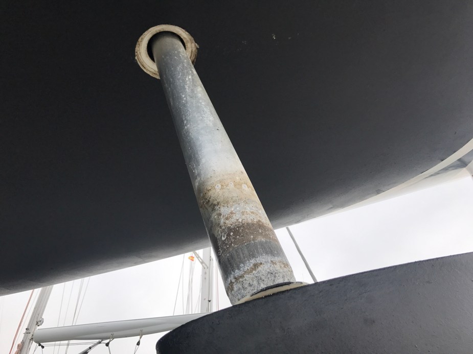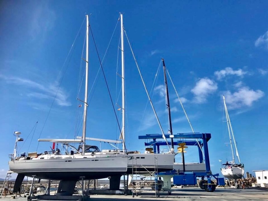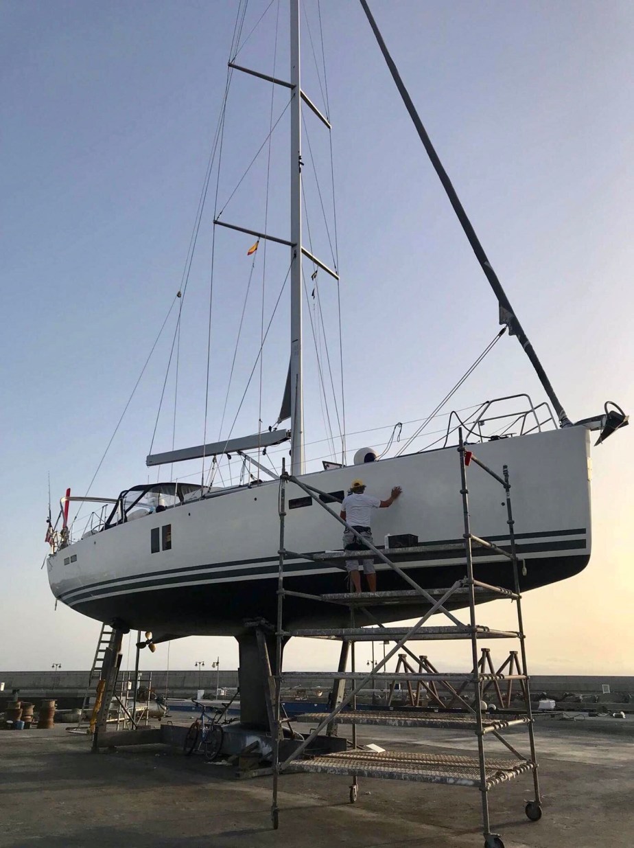 Vi sto på land i 9 dager for å få utført vedlikehold og reparasjoner på båten. I tillegg lå vi 6 dager ved bryggen utenfor verftet for å få gjennomført ytterligere arbeid med båten. Vi gjorde en hel del selv også, blant annet å legge nytt bunnstoff og polere. 📷: Linn Jorstad.