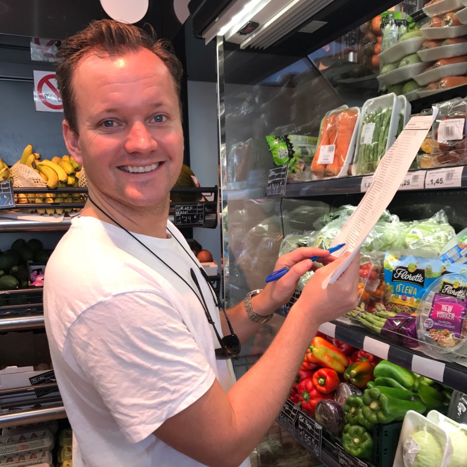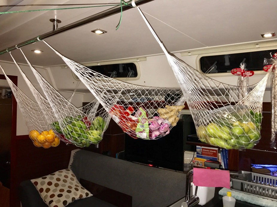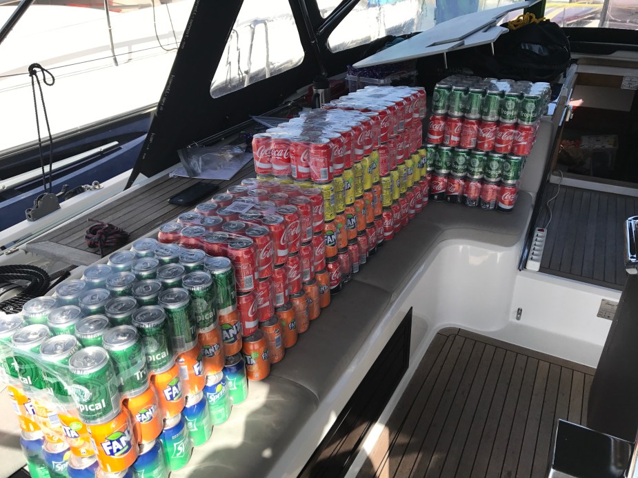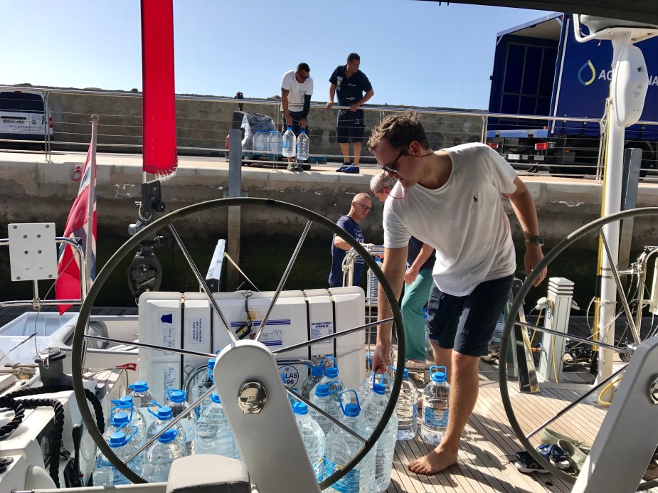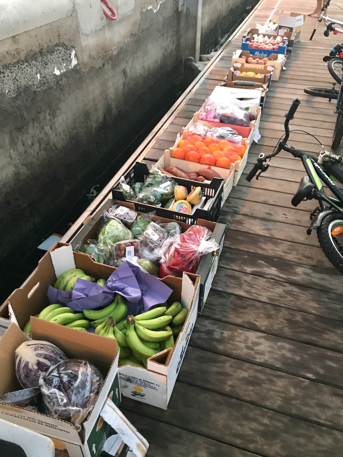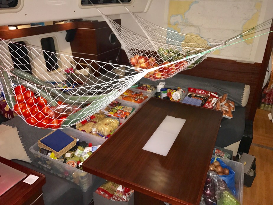 Planlegging av måltider og proviantering var en annen viktig oppgave før overfarten. Vi hadde på forhånd laget en detaljert matplan og handleliste for hele turen. Da crewet kom ned, startet innkjøpene.
