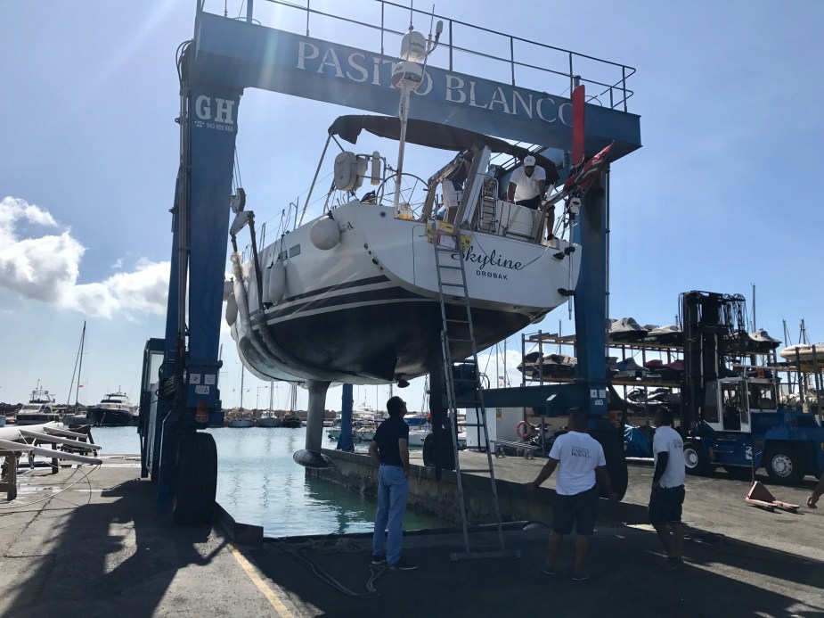 Vi gjorde de siste forberedelsene før Atlanterhavskryssingen på Gran Canaria. Vi seilte over fra Lanzarote i slutten av oktober. På grunn av ARC (en regatta som går fra Gran Canaria til St. Lucia), var det fullt i de fleste marinaer, men vi fikk plass i Pasito Blanco, som ligger sør på øya. Før vi kunne sette seil, hadde vi endel arbeid igjen som skulle gjøres med båten. Det nye roret ble montert. Masten ble tatt ned for å kunne få utført sveisearbeid og vi fikk reparert varmtvannsberederen som hadde sluttet å fungere.