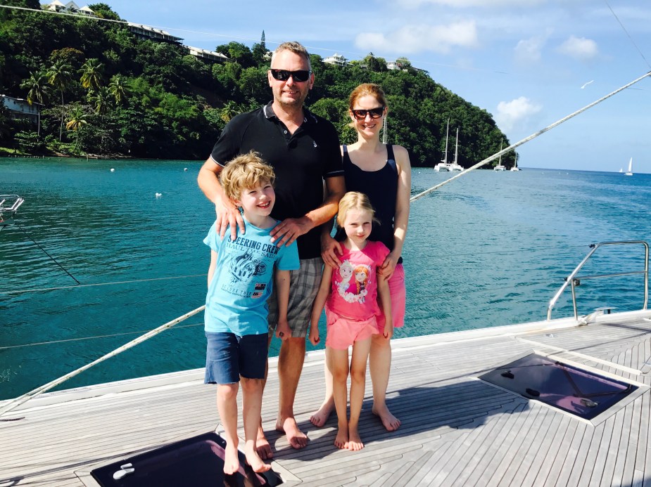 «Gulroten» var at vi på St. Lucia ventet besøk fra Norge. Ellen og David, med barna Hugo og Vilma, skulle seile med Skyline i to uker og feire jul med oss.