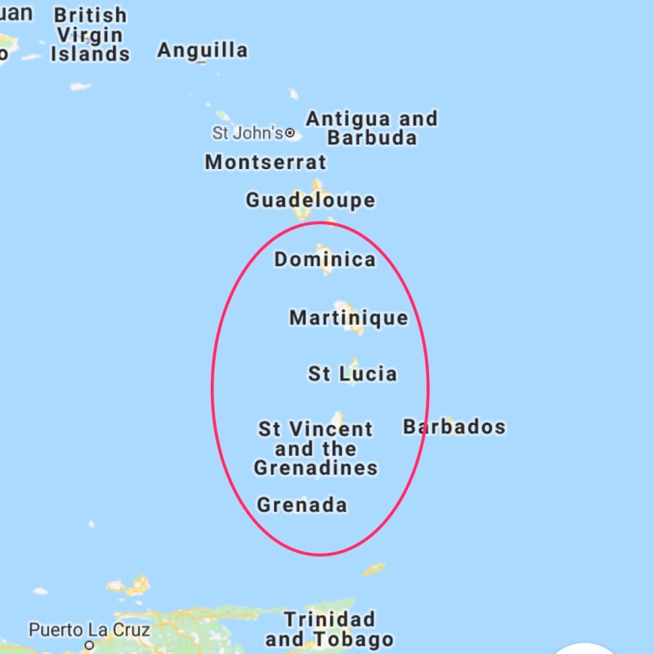 Windward Islands i Karibia omfatter øyene Grenada, St. Vincent & Grenadinene, St. Lucia, Martinique og Dominica. Vi seilte opp og ned og på kryss og tvers i dette området i nesten to måneder. Mange av øyene var vi innom flere ganger.