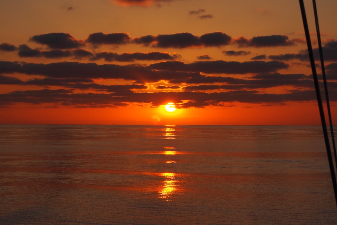 Vi kastet loss fra British Virgin Islands 27. april. Som ekstra mannskap på overfarten hadde vi med oss Pablo Christian på 22 år fra Lørenskog. Vi startet friskt, med motvind hele den første uken. Deretter var det helt vindstille noen dager, før vinden tok seg opp igjen. Jo lengre nordover vi beveget oss, desto kaldere ble det. Da vi dro fra Karibia seilte vi i shorts og bikini. Etterhvert kom langbuksene på, og da vi begynte å nærme oss Azorene, tok vi frem ulltøyet og fullt seilerutstyr. Vi så delfiner, hvaler og veldig mange portugisiske krigsskip. Overfarten tok 18 døgn og vi kom akkurat frem i tide til 17. mai.