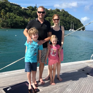 Tre måneder etter Atlanterhavskryssingen kom Peter tilbake på Skyline; denne gangen sammen med kone og barn. Familien seilte med oss i to uker i British Virgin Islands i Karibia.